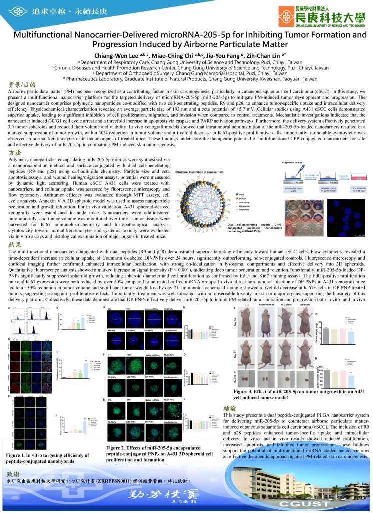 教研動態 Multifunctional Nanocarrier-Delivered microRNA-205-5p for Inhibiting Tumor Formation and Progression Induced by Airborne Particulate Matter 2025-12-30 cgust 慢性疾病暨健康促進研究中心 林資展助理研究員