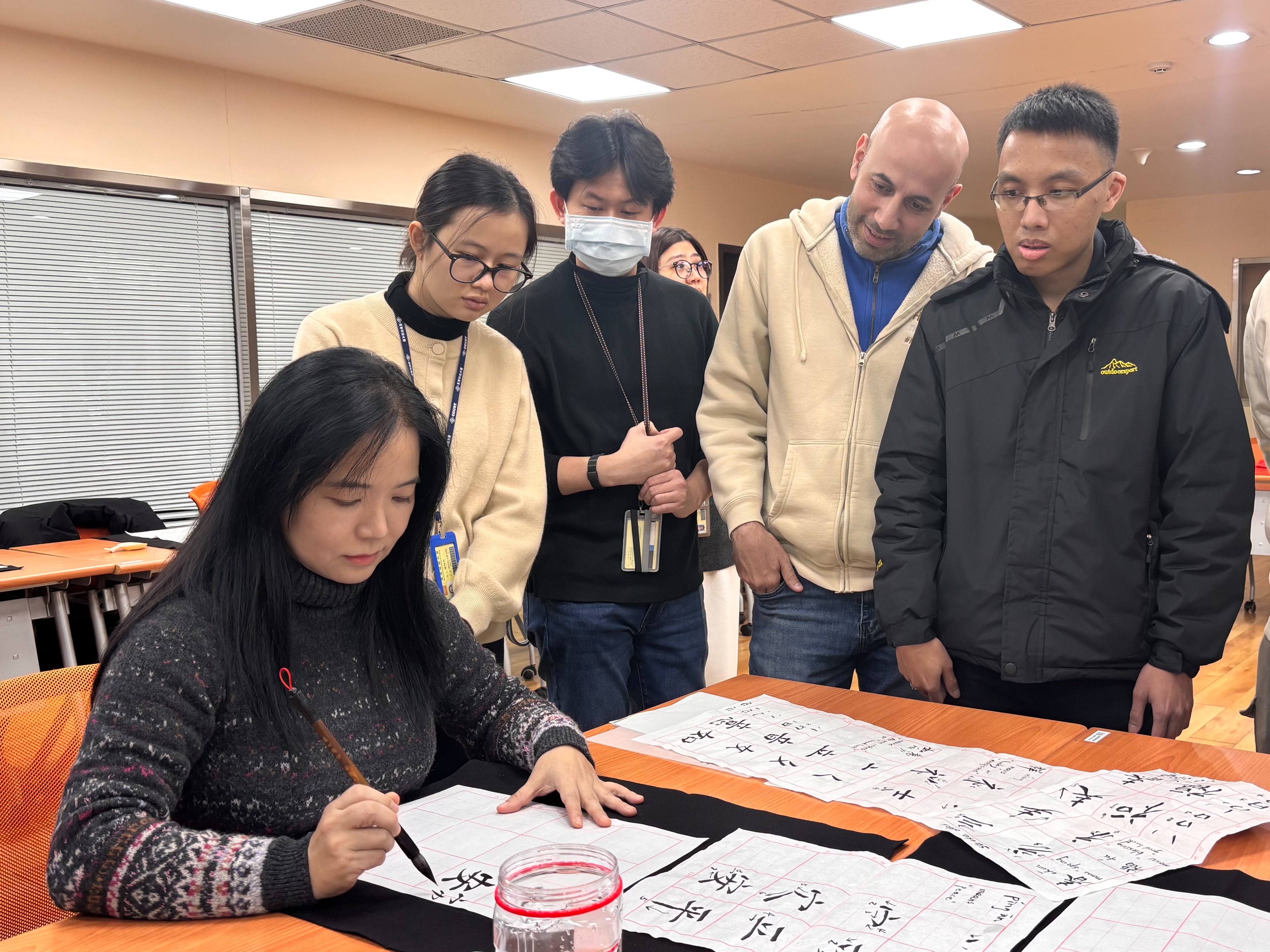 長庚科大校長范君瑜親自到場,與師生一同參與活動,感受濃厚年節氛圍。活動由劉德玲以提筆示範揭開序幕,外籍學生眼神專注神情投入,展現對春聯書寫及國畫創作的高度興趣。經劉德玲用心指導後,學生們躍躍欲試輪番上陣,揮灑毛筆展現各自風格與創意。來自埃及的研究員Mady表示,過去未曾體驗過春聯書寫,原以為相當困難,實際動手後卻覺得新鮮有趣。